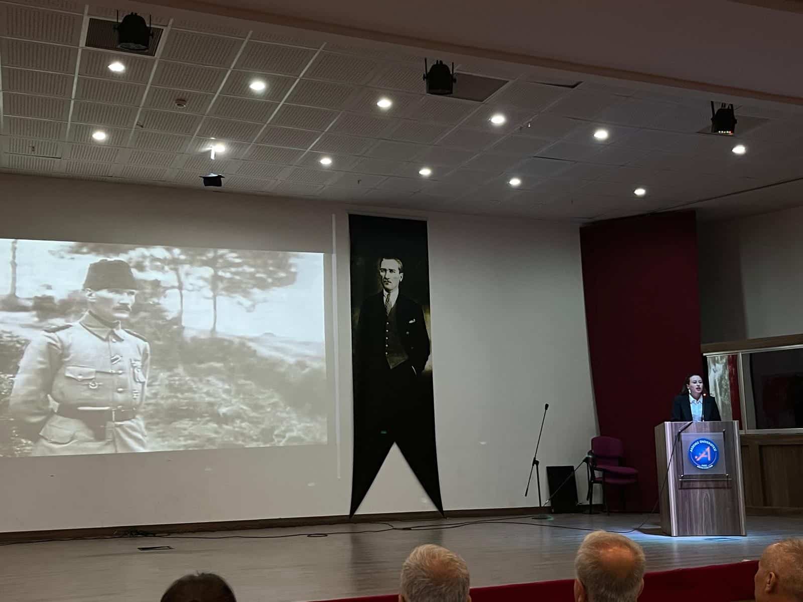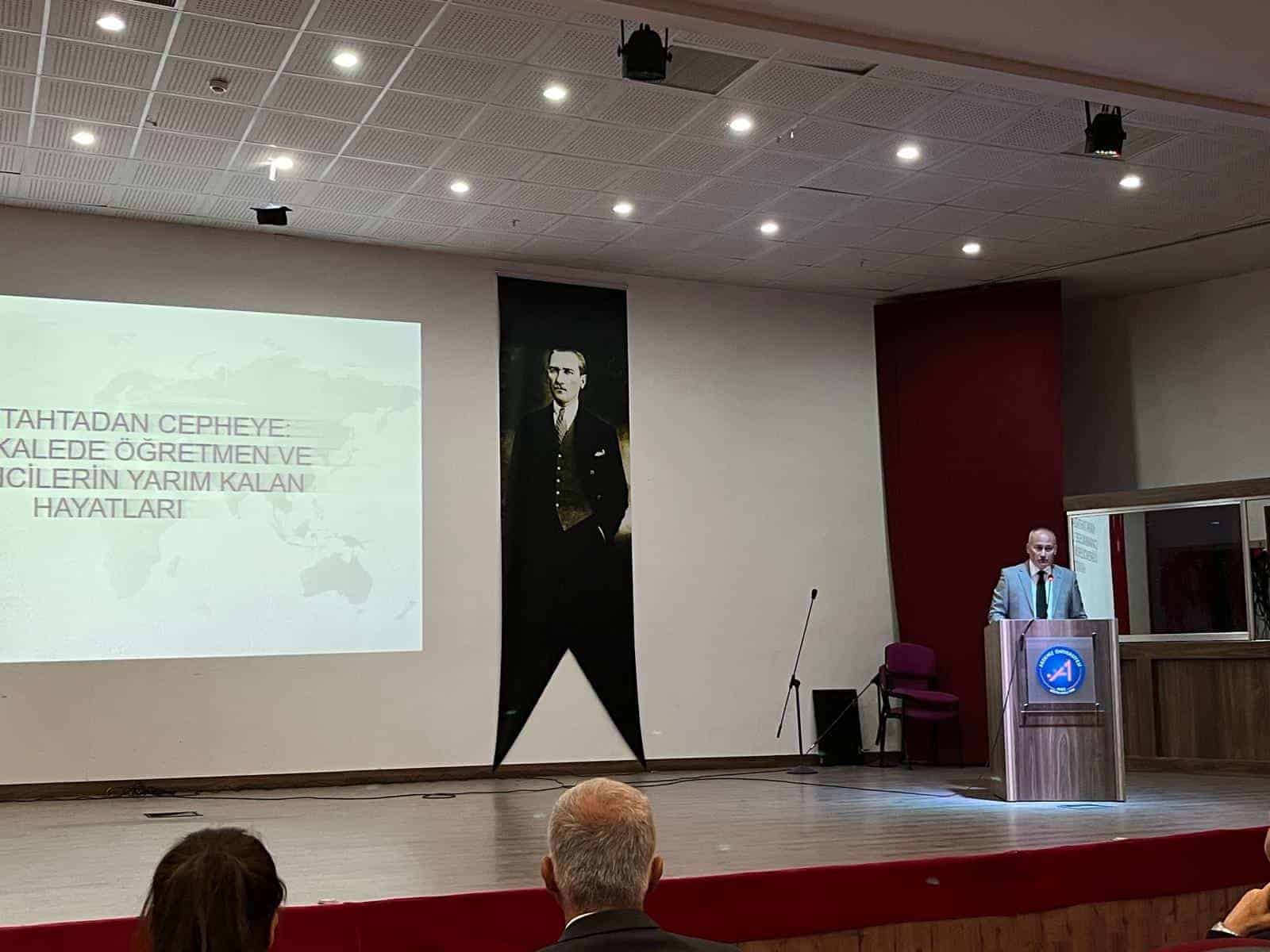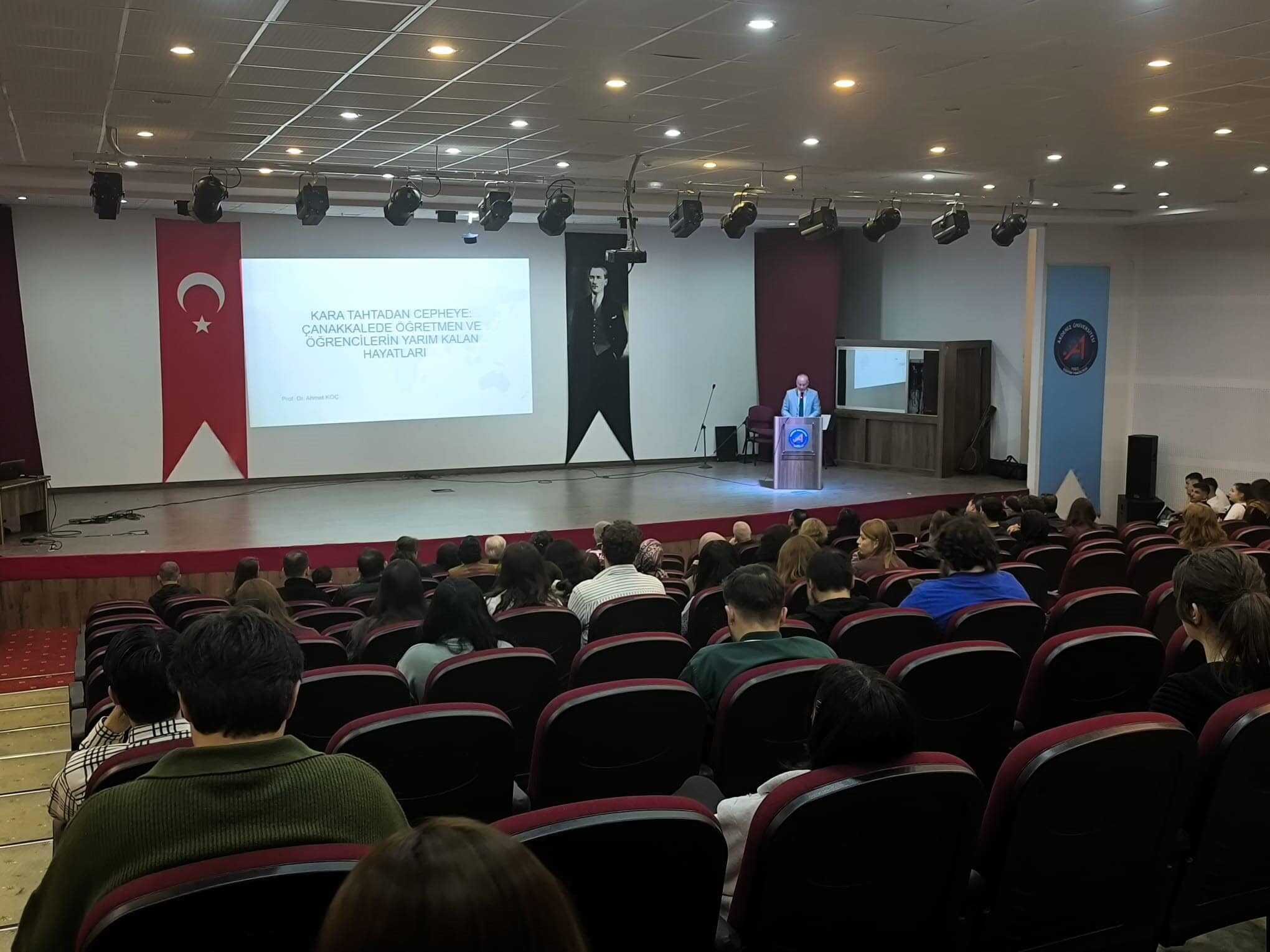 Açılış bölümünde Sosyal Bilgiler Anabilim Dalı Başkanı Prof. Dr. Ahmet Köç, “Kara Tahtadan Cepheye Çanakkale’de Öğretmen ve Öğrencilerin Yarım Kalan Hayatları” başlıklı sunumuyla günün tarihi önemine dikkat çekti. Prof. Dr. Köç, 1915’te öğretmenlerin ve öğrencilerin vatan uğruna eğitimlerini yarıda bırakıp cepheye gitmelerini ve gösterdikleri kahramanlığı anlattı.