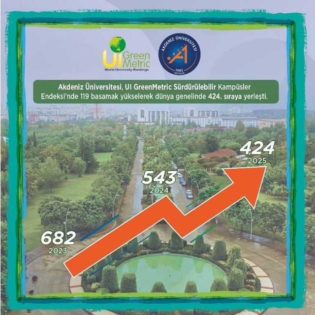Akdeniz Üniversitesi, sürdürülebilirlik alanında önemli bir başarıya imza attı. Dünya genelindeki üniversitelerin çevresel sürdürülebilirlik performanslarını değerlendiren ve uluslararası alanda saygınlığı bulunan UI GreenMetric 2025 sıralamasında Akdeniz Üniversitesi, geçen yıla göre 119 basamak yükselerek 424. sırada yer aldı.