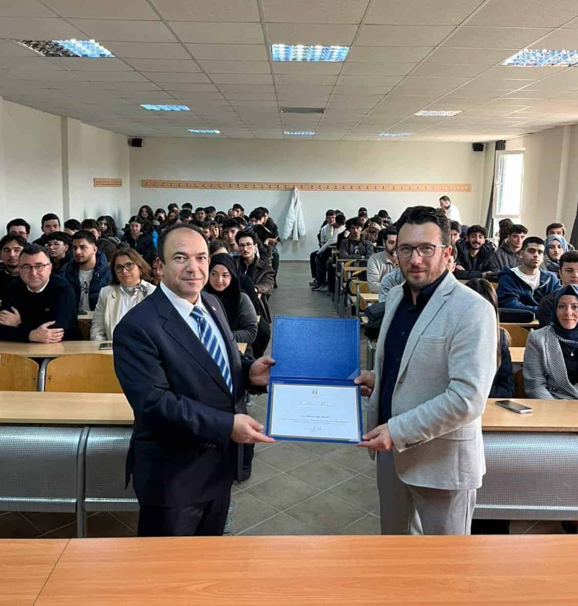 Öğrencilerin yoğun katılım gösterdiği etkinlikte, insani değerlerin korunması, dijital farkındalık ve bilinçli teknoloji kullanımının önemi öne çıktı. Etkinliğin sonunda Bilişim Teknolojileri Meslek Yüksekokulu Müdürü Doç. Dr. Gökhan ATALI, katkılarından dolayı Karasu Kaymakamı’na teşekkür belgesi takdim etti.