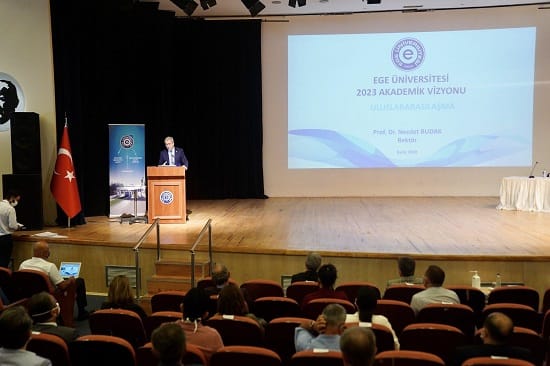 Araştırma üniversiteleri arasına ismini yazdırmak için sürekli çalışan Ege Üniversitesinde, Rektör Prof. Dr. Necdet Budak, bu hedefteki en önemli kriterlerden biri olan Uluslararasılaşma çalışmalarına ilişkin bir sunum gerçekleştirdi.