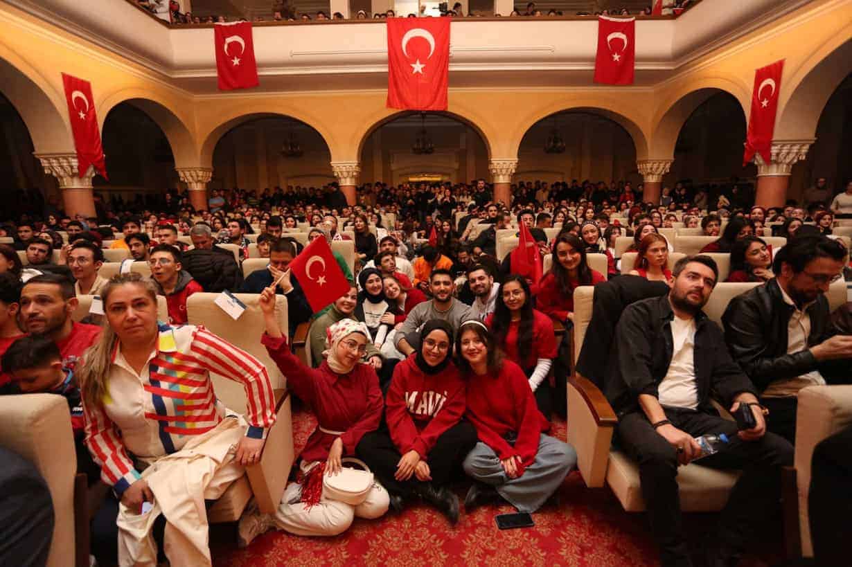 Salonu dolduran Gazi Üniversitesi öğrencileri ve çalışanları, tezahüratlar ve alkışlarla milli takıma destek verdi. Türk bayraklarının dalgalandığı salonda, tüm katılımcılar ay-yıldızlı ekibimizin başarısı için tek yürek oldu.
