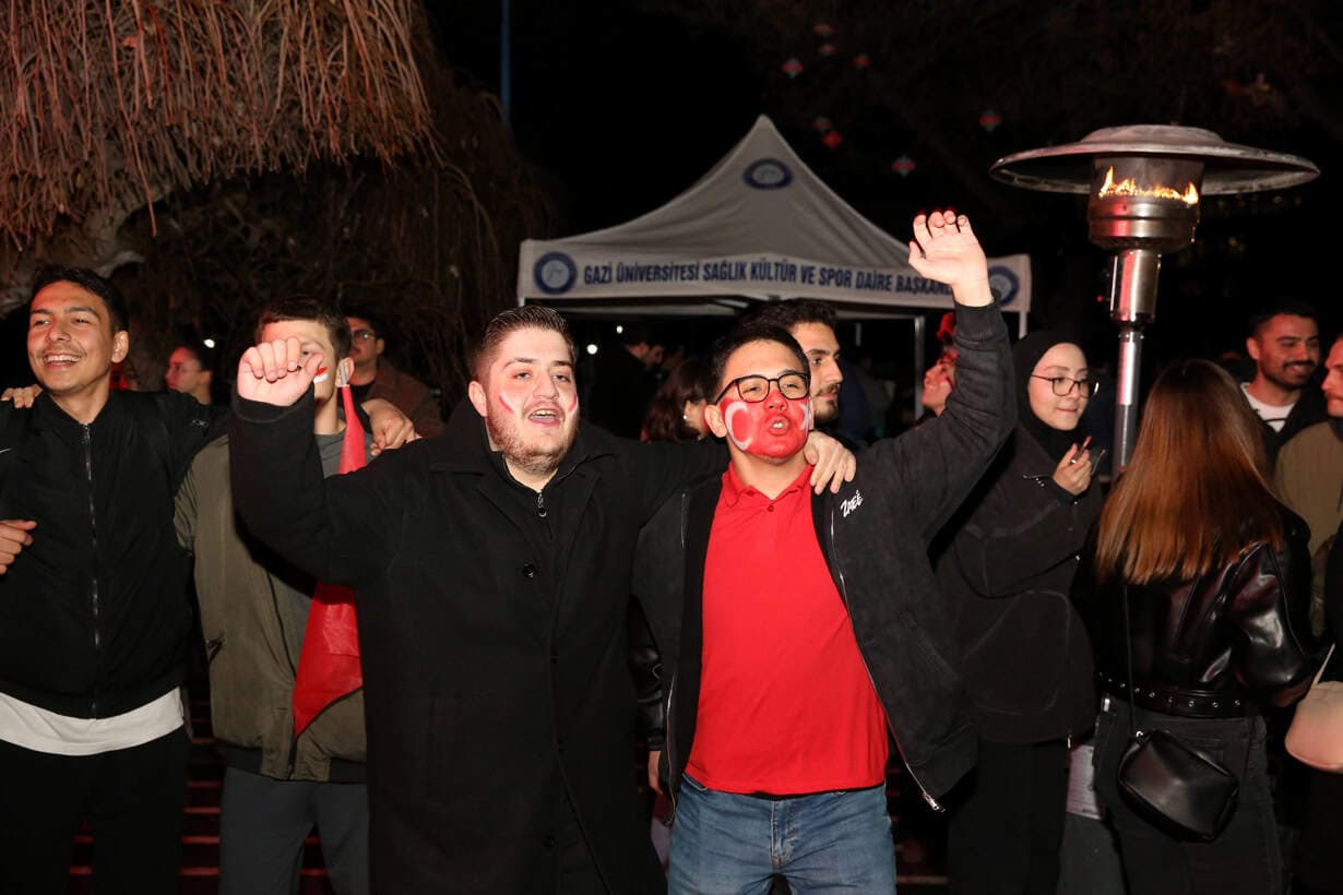 Kritik öneme sahip olan bu karşılaşma, Gazi Üniversitesi kampüsünde unutulmaz bir geceye dönüştü. Öğrencilerimiz, millî takımın 1-0’lık galibiyetini büyük bir heyecan ve sevinçle izleyerek Türkiye’nin uluslararası başarısı için tek yürek oldu. Bu anlamlı organizasyon sayesinde sporun birleştirici gücü bir kez daha ortaya çıktı ve Gazililer, milli heyecanın kampüste ortak bir sevinç ve gurura dönüştüğünü gösterdi.