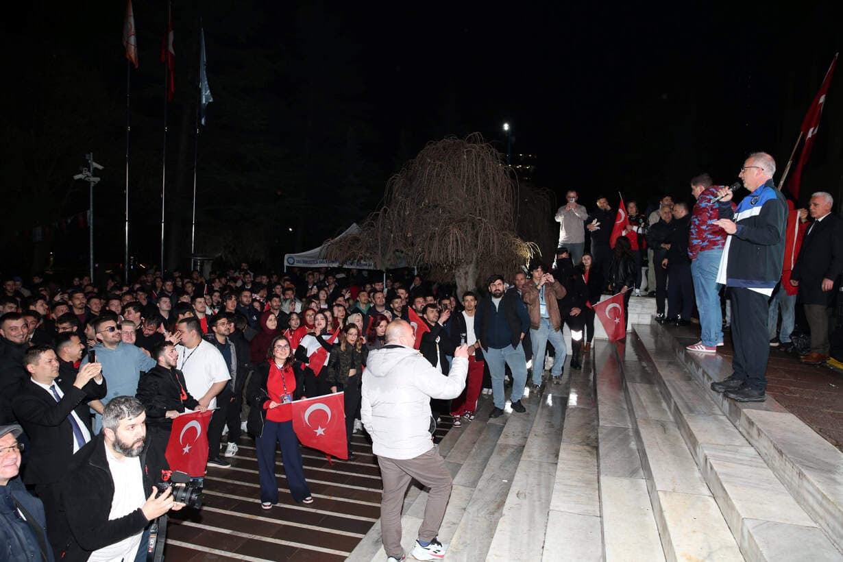 Maç saatinin yaklaşmasıyla birlikte kampüs içinde heyecan giderek yükseldi. Öğrenciler, akademisyenler ve üniversite çalışanları ellerinde bayraklarla Rektörlük önünde toplanıp tezahüratlar yaptı. Kampüs, kırmızı-beyaz renklere bürünerek birlik ve beraberlik duygusunu en yoğun şekilde yaşadı.
