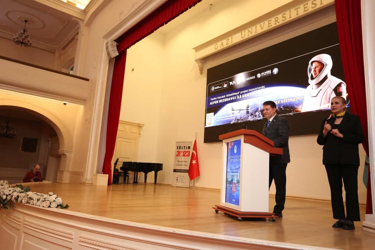 İçişleri Bakanlığı Sivil Toplumla İlişkiler Genel Müdürlüğü desteğiyle, EĞİTİM 2023 Derneği ve üniversitenin katkılarıyla yürütülen “Tarihe Yolculuk: Göbeklitepe” Projesi kapsamında, Türkiye’nin ilk astronotu Alper Gezeravcı ile gerçekleştirilen söyleşi, Rektörlük Mimar Kemaleddin Salonu’nda düzenlendi.