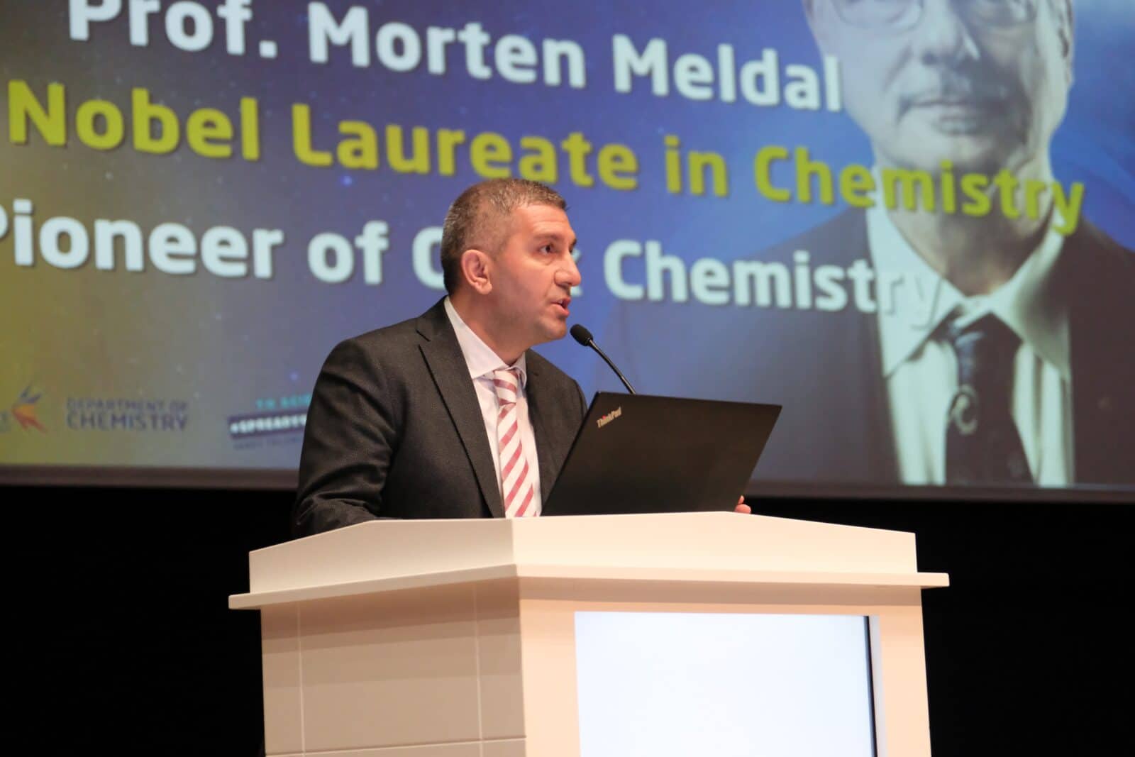 Konuşmasına Nobel ödülünü kazanma anısını esprili bir şekilde anlatarak başlayan Prof. Meldal, “Kimya her şeydir” diyerek, moleküllerin ve atomların birleşimiyle yaşamın nasıl şekillendiğini vurguladı. Çocukluk yıllarında ailesinin çiftliğinde yaptığı deneylerin bilimsel merakını nasıl geliştirdiğini aktardı.