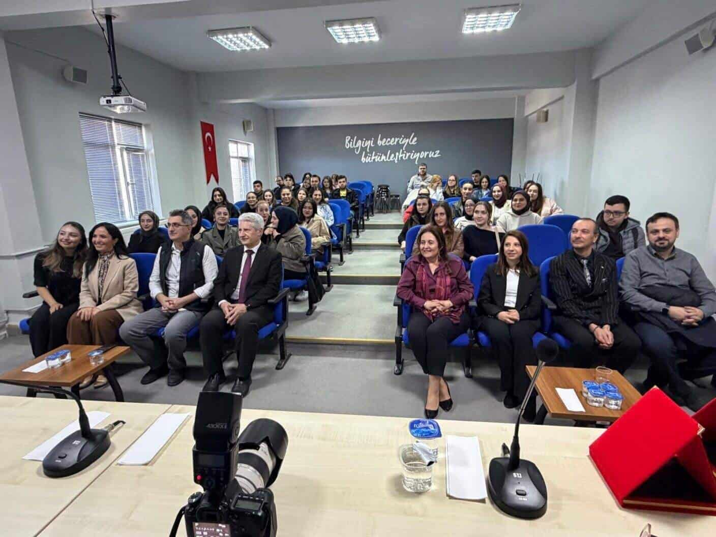 Denetim Müdürü ve SMMM Burcu Kibaroğulları, kendi kariyer yolculuğundan örnekler sunarak, başarıya ulaşmada azim ve disiplinli çalışmanın önemine dikkat çekti. Özellikle kadınların iş dünyasında daha aktif olmaları, kendilerine güvenmeleri ve güçlü bireyler olarak öne çıkmaları gerektiği vurgulandı.