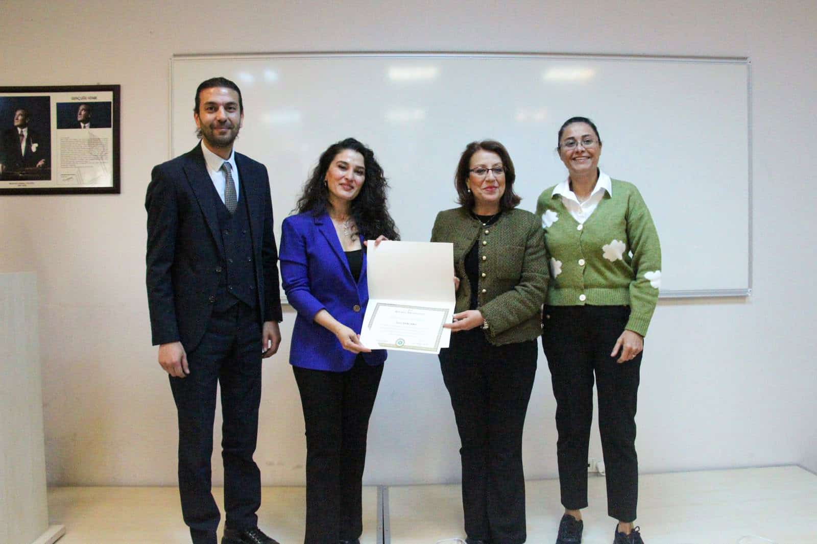 Katılımcılar, akademik yayın süreçlerinde yaşadıkları zorluklar ve Springer Nature platformunun sunduğu avantajlar hakkında uzmanlara sorular yöneltti. Etkinlik sonunda, Dekan Prof. Dr. İdil Sayımer ve Bilal Yavuz Demirkaya, Selin Şencanlı’ya teşekkür belgesi takdim etti. Program, toplu fotoğraf çekimiyle sona erdi.