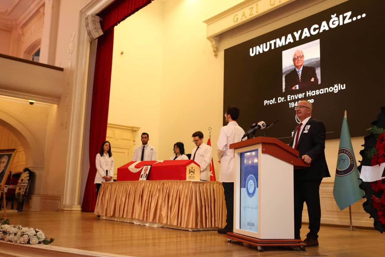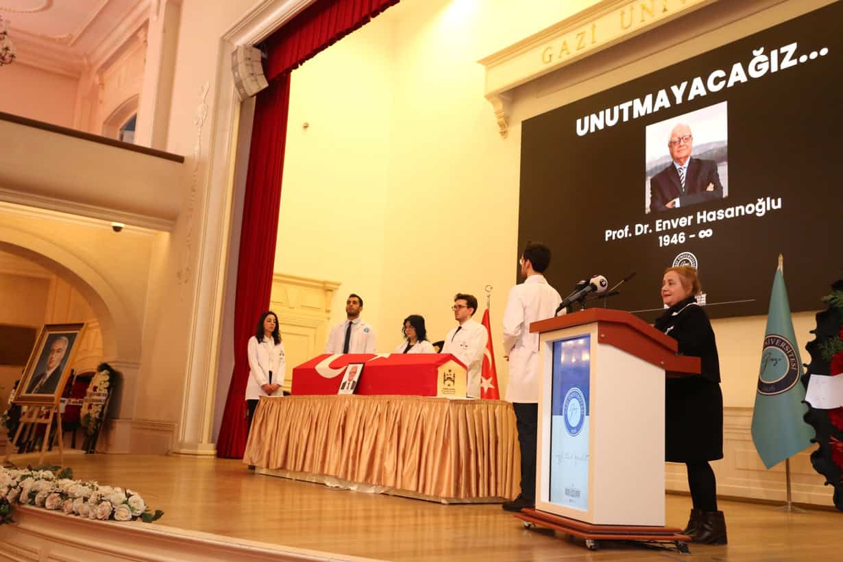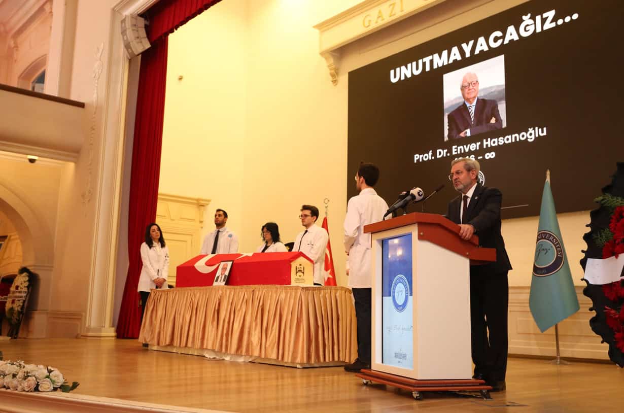 Gazi Üniversitesi eski rektörü ve Tıp Fakültesi emekli öğretim üyesi Prof. Dr. Enver Hasanoğlu, düzenlenen anlamlı bir törenle ebediyete uğurlandı. Törende üniversite yönetimi, akademik-idari personel, ailesi, öğrencileri ve çok sayıda davetli hazır bulundu.
