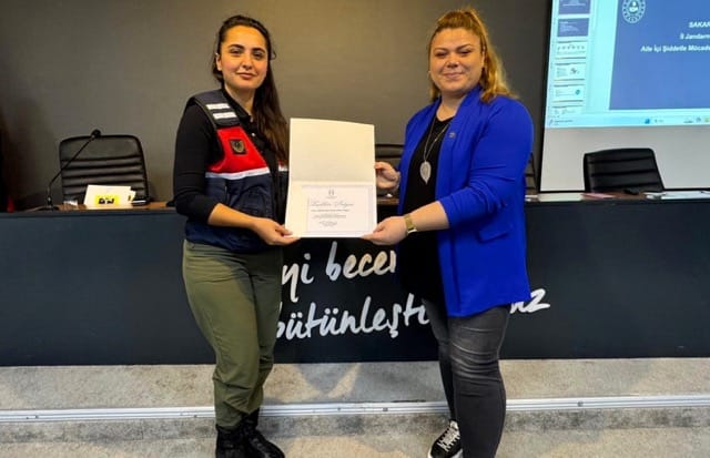 Eğitimin sonunda, katkılarından dolayı Sakarya İl Jandarma Komutanlığı personeline Personel Daire Başkanı Hülya Ayvaz Camcı tarafından teşekkür belgesi takdim edildi.