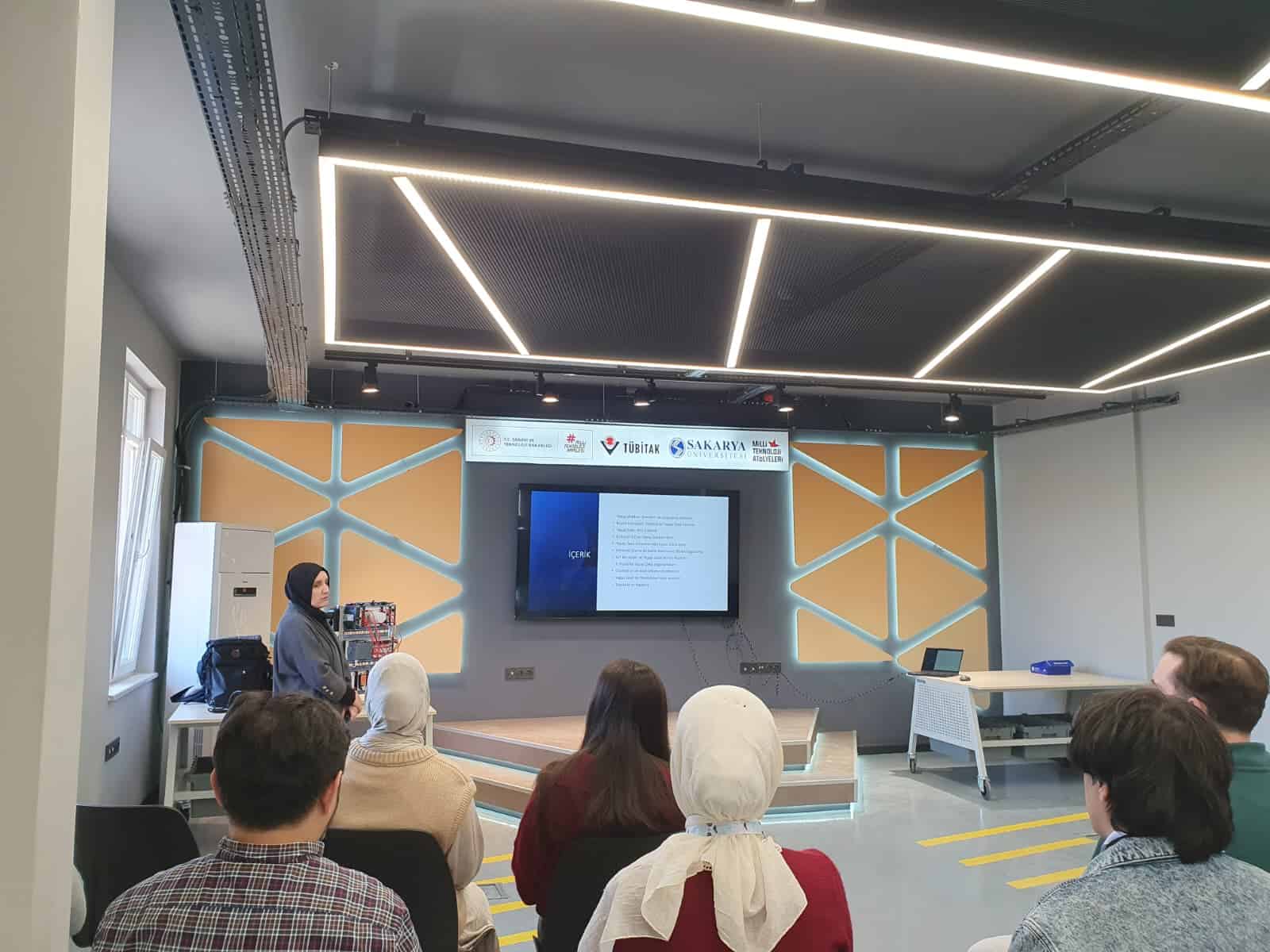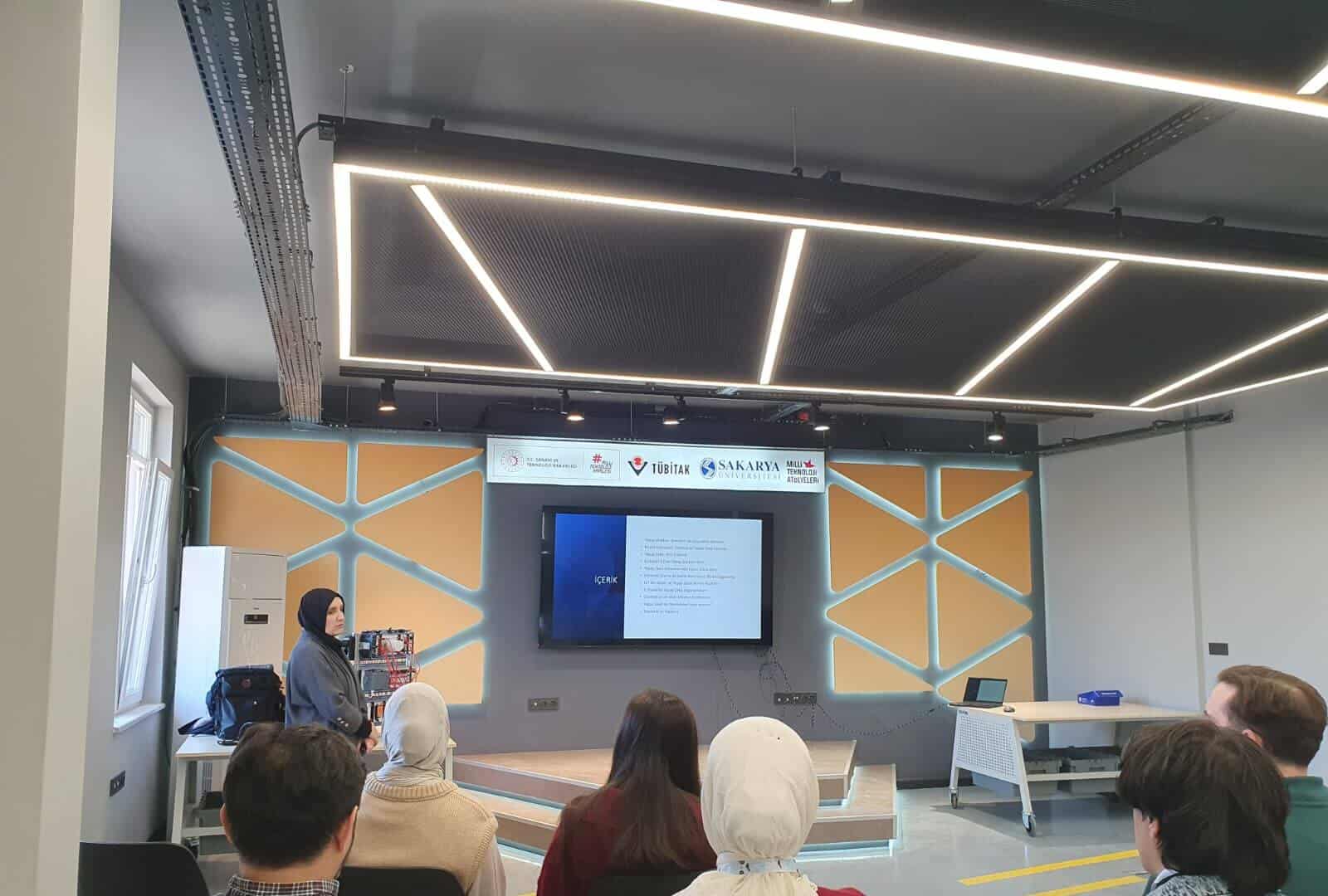 Programda ayrıca, Sakarya Üniversitesi bünyesindeki Milli Teknoloji Atölyesi’nin projelerde öğrenci katılımını nasıl desteklediği anlatıldı. Tanıtım sunumunda atölyenin kuruluş amacı, yürütülen projeler ve öğrencilere sağlanan olanaklar detaylı şekilde paylaşıldı. Robotik, elektronik ve yazılım odaklı çalışmalar ile uygulamalı eğitim süreçleri öne çıkarıldı.