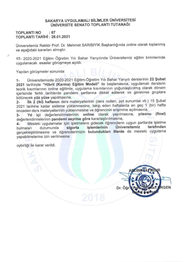 SAKARYA – Sakarya Uygulamalı Bilimler Üniversitesi (SUBÜ), 2020-2021 Akademik Yılı Bahar Yarıyılı’na ilişkin eğitim-öğretim kararlarını açıkladı. Buna göre yeni döneme Sağlık Bakanlığı ve Yükseköğretim Kurulu’nun (YÖK) görüş birliğine vararak aldığı uygulamalı eğitimin yüz yüze yapılabileceği kararı doğrultusunda hibrit (karma) eğitimle devam edilecek. Teorik dersler ve uygulamalı derslerin teorik kısımları uzaktan (online) yapılacak. İşletmelerde yapılan mesleki uygulamalara devam edilecek. Derslerin uygulamaları ise dönem içerisinde yoğunlaştırılmış olarak yapılacak. Buna ilişkin kararlar ilgili birimlerin web sayfalarında açıklanacak. 1 yılı aşkın süredir okullarından ayrı kalan öğrenciler derslerin uygulamaları için de olsa okullarına kavuşmuş olacak.
