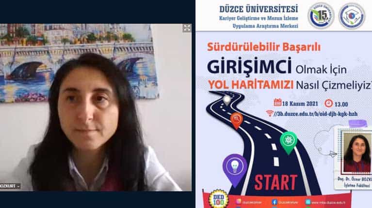 Düzce Üniversitesi Kariyer Geliştirme ve Mezun İzleme Uygulama Araştırma Merkezi tarafından düzenlenen ‘‘Sürdürülebilir Başarılı Girişimci Olmak İçin Yol Haritamızı Nasıl Çizmeliyiz?’’ başlıklı...