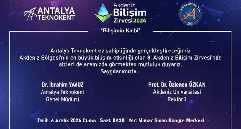 Bilişimin Kalbi Yine Antalya’da Atacak Akdeniz Üniversitesi Antalya Teknokent’in düzenlediği Akdeniz Bilişim Zirvesi 8’inci kez kapılarını açmaya hazırlanıyor. Zirve bilişim alanında sektörün...