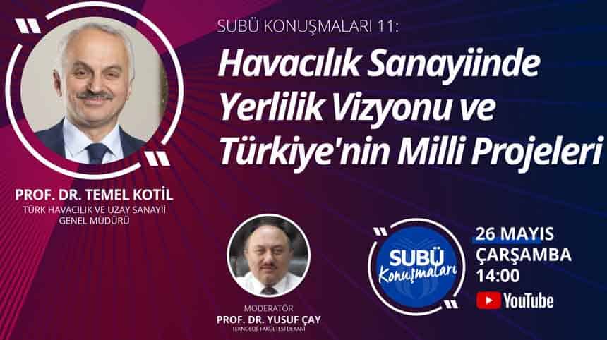 SUBÜ Konuşmaları’nın 11. konuşmacısı ‘Havacılık Sanayiinde Yerlilik Vizyonu ve Türkiye’nin Milli Projeleri’ başlıklı söyleşiyle TUSAŞ Genel Müdürü Prof. Dr. Temel Kotil olacak....