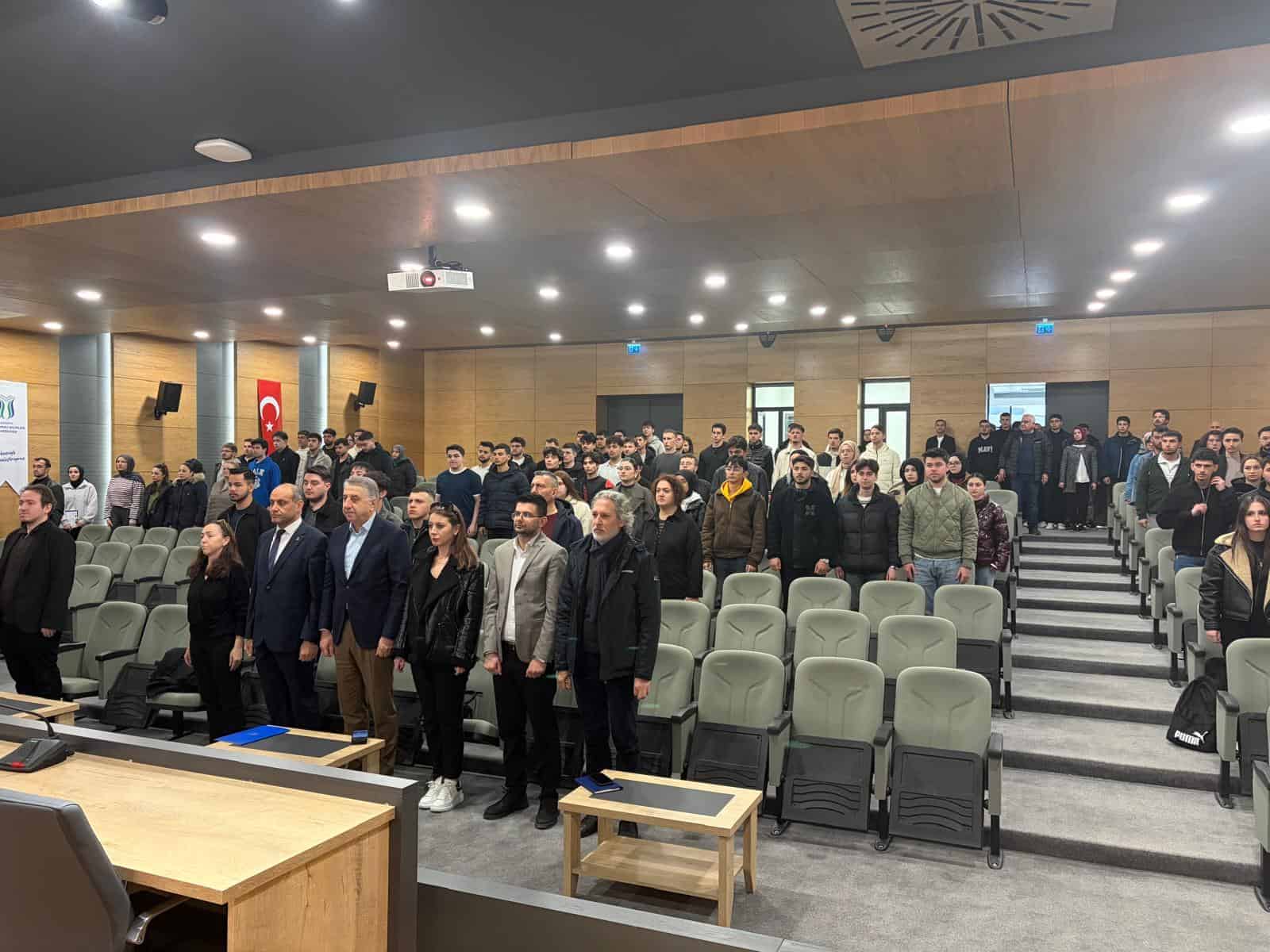 Isılsan Makine Yönetim Kurulu Başkanı Turan Erdemli, Yüksekokulun düzenlediği Sektörle Buluşma Etkinliği kapsamında, “Gençler İçin Girişimcilik ve Sanayiye Açılan Kapı” başlıklı söyleşi ile öğrencilerle buluştu. Etkinlik, İstiklal Marşı’nın kabulünün 105. yılı nedeniyle yapılan saygı duruşu ve İstiklal Marşı’nın okunması ile başladı.