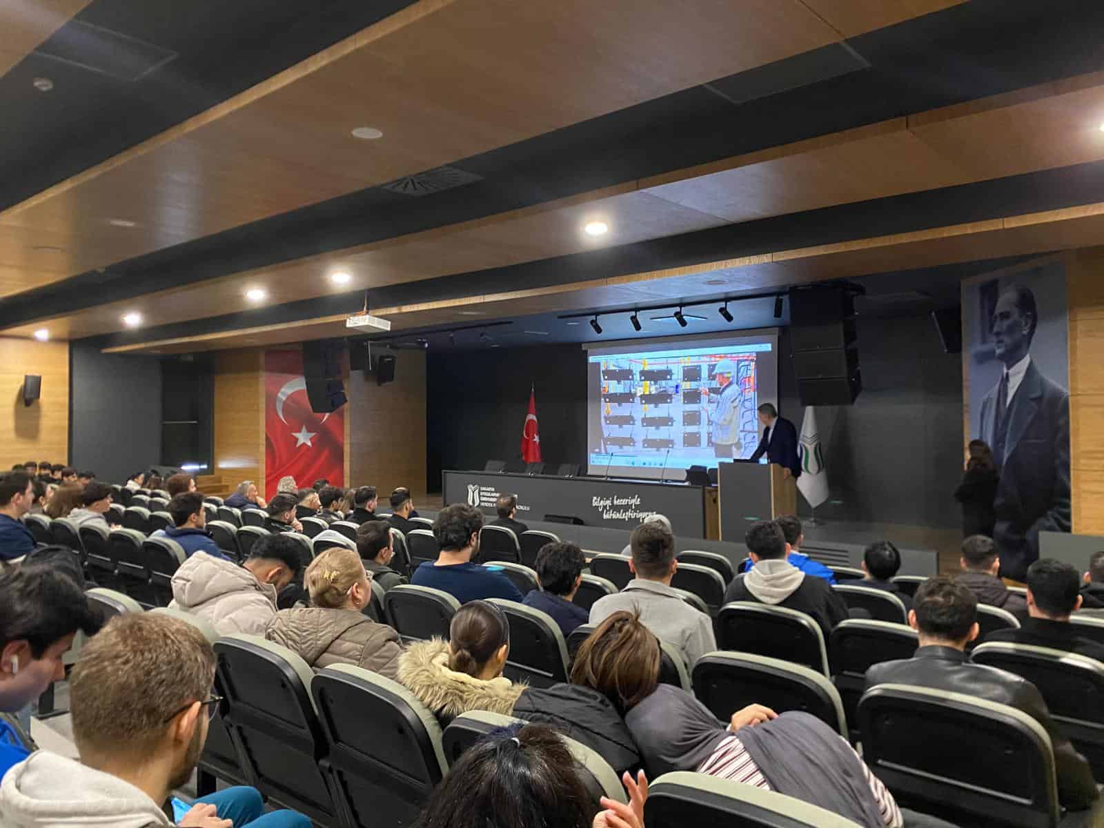 Yoğun katılımla gerçekleşen etkinlikte Erdemli, iş hayatındaki tecrübelerini ve sanayi sektörünün tarihsel gelişimini öğrencilerle paylaştı. Şirketin kuruluşundan günümüze kadar geçen süreci, üretim anlayışını ve faaliyet alanlarını aktaran Erdemli, sanayi sektöründe gençlerin yenilikçi düşüncelerinin ve değişime açık yaklaşımlarının sektöre büyük katkı sunduğunu vurguladı.