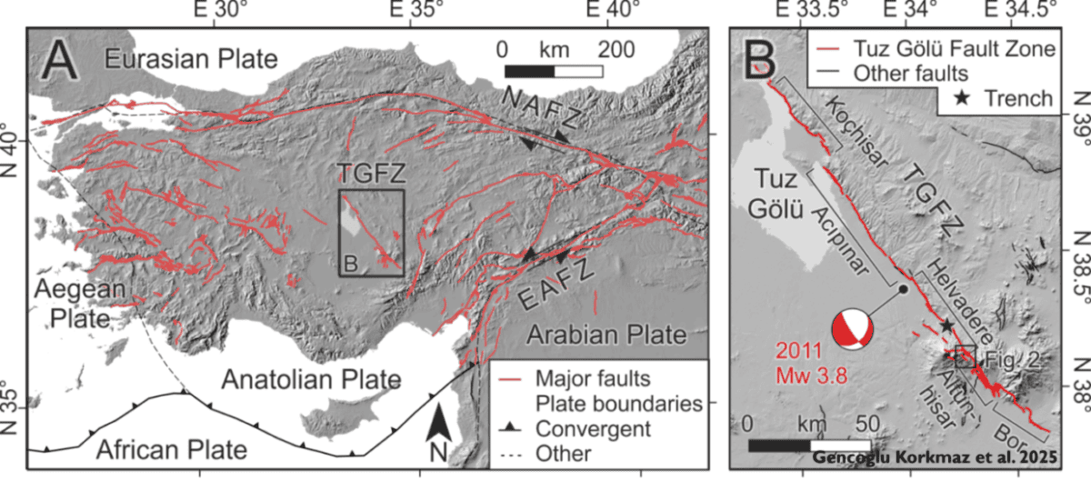 Konya Teknik Üniversitesi Mühendislik ve Doğa Bilimleri Fakültesi Jeoloji Mühendisliği Bölümü öncülüğünde yürütülen ve TÜBİTAK tarafından desteklenen uluslararası araştırma, İç Anadolu Bölgesi’nin jeodinamik yapısına dair önemli veriler sundu. Ekip, Tuz Gölü Fayı’nın yılda yaklaşık 1,3 milimetre dikey hareket ettiğini bilimsel olarak tespit etti.
