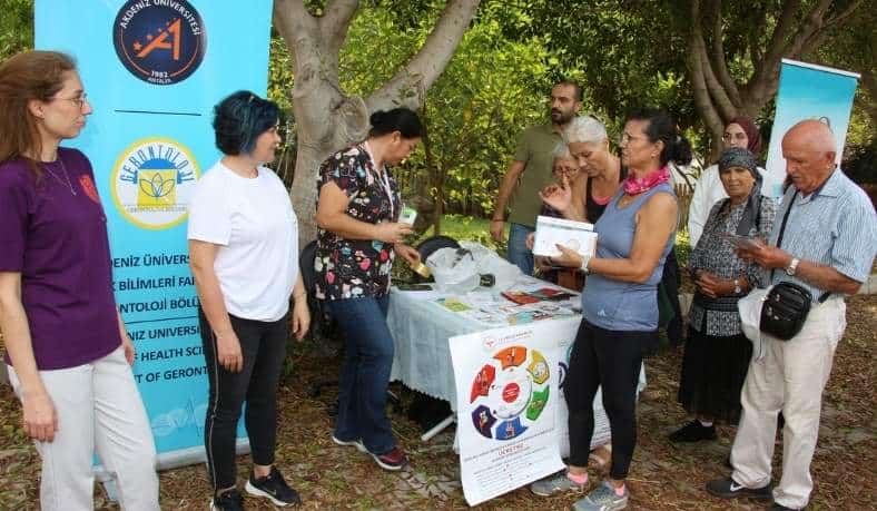 Akdeniz Üniversitesi Sağlık Bilimleri Fakültesi Gerontoloji Bölümü bahçesinde gerçekleştirilen etkinlikte gençler ve yaşlılar İl Sağlık Müdürlüğü Fizyoterapisti Fzt. Şule Özbaykaya rehberliğinde egzersiz yaptılar. Egzersiz sonrası İl Sağlık Müdürlüğü’nden gelen sağlık ekibi, katılımcılara karbonmonoksit ölçümü, sağlık bilgilendirmesi ve diyetisyen kontrolü gerçekleştirdi.